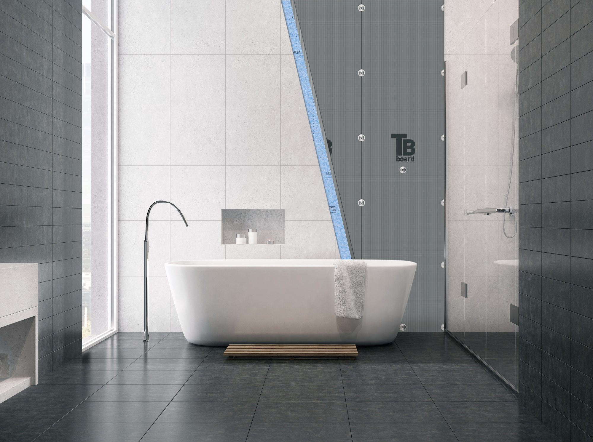 TB Board Våtromsplater har lang levetid og egner seg like godt til nye konstruksjoner som til rehabilitering. På bad og våtrom skal platene dekkes med flis eller murpuss.